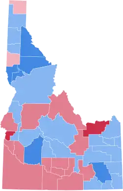 | Twin Falls | 6,128 | 43.41% | 7,946 | 56.29% | 36 | 0.26% | 6 | 0.04% | -1,818 | -12.88% | 14,116 |