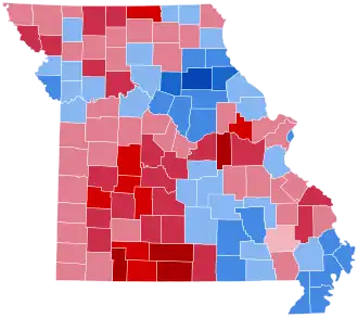| Laclede | 3,011 | 39.17% | 4,670 | 60.75% | 4 | 0.05% | 1 | 0.01% | 1 | 0.01% | -1,659 | -21.58% | 7,687 |