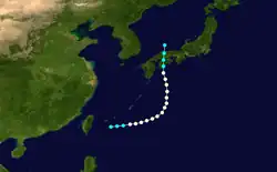 Louise was first seen developing on October 2, 1945, in the Caroline Islands. It unexpectedly veered north and slowed down, only to intensify as it passed over Okinawa on October 9 with 140 km/h (90 mph) wind gusts and a minimum central pressure of 968.5 mbar. Shortly after, Louise began to weaken, and hit Japan as a strong tropical storm. The tropical cyclone became extratropical shortly after on October 12. In Okinawa, 36 people died, 47 people were reported missing, and 100 people were seriously injured.