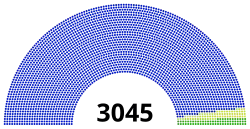 The opposition parties urged Kuomintang to ensure the quota of elected delegates be reached prior to the election,[19] reportedly at 230 and 202 for the Youth and Democratic Socialist respectively.[10] Kuomintang is suggested to have won "in landslide", taking at least 80% of legislative seats,[10] equivalent to more than 2,000 seats in National Assembly. Many Kuomintang-nominated candidates, however, still lost in the election, while party members nominated by voters won. Kuomintang later passed a controversial and unconstitutional resolution, forcing those elected delegates with KMT affiliation to give up their seats such as to fulfill the demand from the opposition, as they threatened to withdraw from the National Assembly in protest.[20] The chaos following the resolution forced the meeting to postpone from 25 December 1947 to 29 March 1948, and only ended as it was declared seats would not needed to be given up.