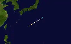 Tropical Storm Irene formed on November 30 between the Philippine Islands. It strengthened to a tropical storm with 50 mph winds before it made landfall on one of the islands. It curved northeast and weakened to a tropical depression. But after exiting land, it restrengthened to a moderate tropical storm. But shortly thereafter, it became extratropical on December 3. The Japan Meteorological Agency analyzed it as a tropical depression, though it was actually a moderate tropical storm.
