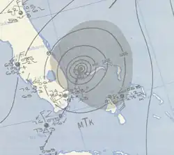 The 1948 Miami hurricane (Air Weather Service designation: Fox)[1] caused no fatalities in Florida, despite moving across the Miami area as a hurricane.[2] The ninth tropical storm and fifth hurricane of the 1948 season, the storm developed from a large low pressure area over the northwestern Caribbean Sea on October 3. The storm intensified into a tropical storm early the next day and a hurricane several hours later. Fox then significantly deepened, peaking with winds of 125 mph (201 km/h) early on October 5. Around that time, Fox made landfall in eastern Pinar del Río Province of Cuba. Fox crossed the island and emerged into the Straits of Florida. Late on October 5, the hurricane struck Bahia Honda Key, Florida, with winds of 105 mph (169 km/h) and two hours later, hit Flamingo. Fox emerged into the Atlantic Ocean near Fort Lauderdale early on October 6. The storm moved northeastward and later curved to the east-northeast. Late on October 7, Fox made landfall on Bermuda with winds of 105 mph (169 km/h). Fox weakened over the next several days and later executed a large cyclonic loop. By October 16, it became extratropical while well east-southeast of Newfoundland.