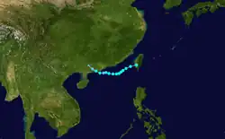 Gertrude formed on August 27 east of the Philippines. It moved west while reaching peak intensity as a Category 2 typhoon. It later weakened and re-strengthened to a Category 1 typhoon. After passing Luzon, Gertrude moved west-northwest and hit China as a tropical storm. It dissipated on September 4.