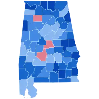 | Talladega | 5,028 | 58.18% | 3,588 | 41.52% | 26 | 0.30% | 1,440 | 16.66% | 8,642 |