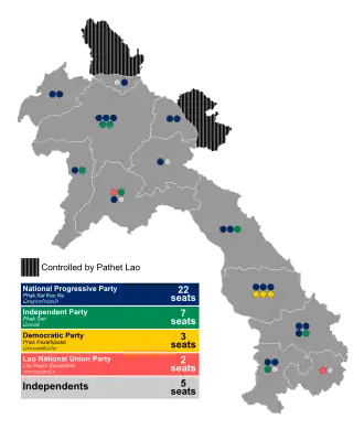 Parliamentary elections were held in Laos on 25 December 1955 to elect members of the National Assembly, the lower chamber of Parliament.[1] The result was a victory for the ruling National Progressive Party, which won 22 of the 39 seats.[2] Voter turnout was 76%.