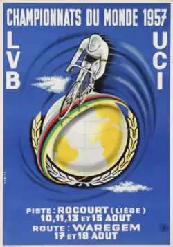 The 1957 UCI Track Cycling World Championships were the World Championship for track cycling. They took place in Rocourt, Belgium from 10 to 15 August 1957.[1] Five events for men were contested, 3 for professionals and 2 for amateurs.