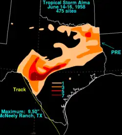 - ^ "Storm Drops Deluge Over Inland Texas". The Spokesman-Review. 1958-06-17. Retrieved 2013-03-06.