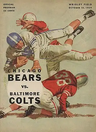 ^ George Strickler, "Bears' Passes Beat Giants, 18–6: 43,385 Watch Chicago Win Fifth in Row," Chicago Tribune, Sept. 12, 1959, sports p. 1, 3 .