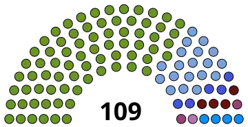 All 109 seats in the House of Representatives 55 seats needed for a majority | |||||||||||||||||||||||||