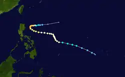 Phyllis formed on December 11 east of the Philippines. It traveled west, reaching peak intensity as a category 3 typhoon east of Luzon, while turning sharply towards east. The storm dissipated on December 20, without making any landfall.