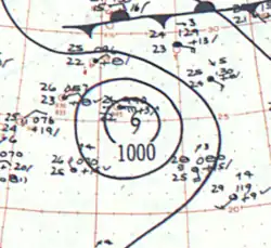 • June 22–27, 45 km/h (30 mph) 1000 mbar (hPa; 29.53 inHg)[17]