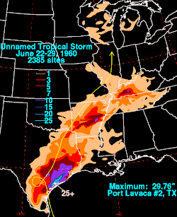 - ^ Roy S. Dunham (July 18, 1960). "Tropical storm reports". United States Weather Bureau. Austin, Texas: National Hurricane Center; National Oceanic and Atmospheric Administration. Retrieved May 8, 2013.