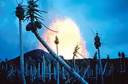 ![]() Fountains of lava above papaya trees at the start of the eruption. | |