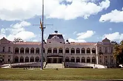 In a brief radio address, after order had been restored, Diệm dismissed the attack as an "isolated act" and attributed his escape to "divine protection".[1] He visited the soldiers wounded in the attacks and also promised the rebel pilots' colleagues that they would not bear any responsibility for the bombing. American President John F. Kennedy promptly sent a message denouncing the attack as a "destructive and vicious act" and expressed relief that Diệm was "safe and unharmed".[4] US ambassador Frederick Nolting determined that the attack had been the result of "two isolated cases" and opined that the incident did not represent widespread dissatisfaction with the regime.[11] The absence of a VC reaction led Nolting to label the bombing as a "limited scope, anti-Communist assassination attempt".[12] Diệm was praised for outwardly projecting a calm demeanor following the attack, and he moved to temporary government accommodation usually used for foreign dignitaries and visited Bien Hoa Air Base.[8]