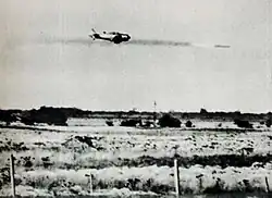 At 8 am on 3 April, the Air Force retaliated. A squad of F-86 Sabres, Gloster Meteors and MS.760s launched air strikes against the naval base, destroying five Navy aircraft on the ground. The 8th Tank Regiment subsequently occupied Punta Indio only to find it abandoned, its personnel having fled to Uruguay, leaving behind five seamen and four wounded.[2]