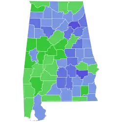 Cullman 11,134 67.60% 5,225 31.72% 111 0.67% 5,909 35.88% 16,470