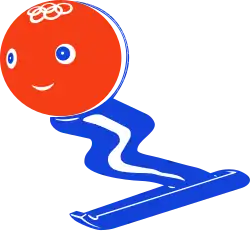 For the first time, there was an Olympic mascot, although it was unofficial. The mascot was named Schuss, a stylised skier wearing a blue skiing costume and a large red ball as a head.[1] The mascot designed by Aline Lafargue was hardly recognised publicly. It had unofficial character, was marked with great restraint and appeared solely on pins and several toys.