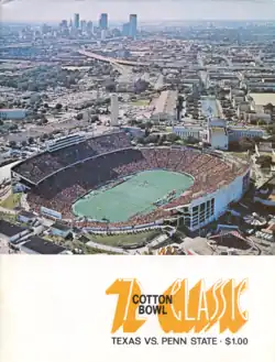 The 1972 Cotton Bowl Classic was a college football bowl game between the Penn State Nittany Lions and the Texas Longhorns. The 36th Cotton Bowl Classic, it was played on Saturday, January 1, 1972, at the Cotton Bowl in Dallas, Texas.[1][2]