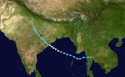 The 1972 North Indian Ocean cyclone season was part of the annual cycle of tropical cyclone formation. The season had no official bounds, but cyclones tend to form between April and December. These dates conventionally delimit the period of each year when most tropical cyclones form in the northern Indian Ocean. There are two main seas in the North Indian Ocean—the Bay of Bengal to the east of the Indian subcontinent and the Arabian Sea to the west of India. The official Regional Specialized Meteorological Centre in this basin is the India Meteorological Department (IMD), while the Joint Typhoon Warning Center (JTWC) releases unofficial advisories. An average of five tropical cyclones form in the North Indian Ocean every season with peaks in May and November.[1] Cyclones occurring between the meridians 45°E and 100°E are included in the season by the IMD.[2]