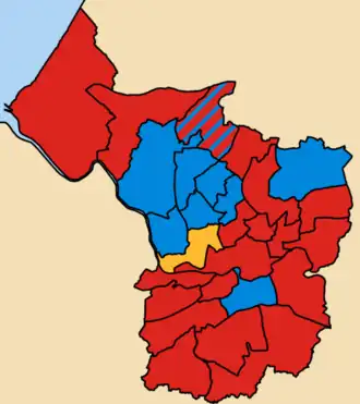 The 1973 Bristol City Council election took place on 7 June 1973 to elect members of Bristol City Council in England.[1] This was on the same day as other local elections. Voting took place across 28 wards, each electing 3 Councillors. Following the Local Government Act 1972, this was the first election to the new non-metropolitan district council for Bristol, which came into being on 1 April the following year. Labour took control of the Council after winning a comfortable majority of seats.