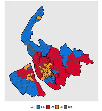 Map of Merseyside County Council showing wards won by party[2]