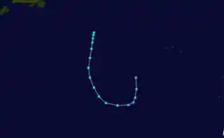 An extratropical low pressure system developed into a subtropical storm about 615 mi (990 km) east-southeast of Newfoundland, at 12:00 UTC on December 9.[3][7] The storm moved rapidly southward and intensified, reaching maximum sustained winds of 70 mph (110 km/h) about 24 hours later,[3] based on observations from an unidentified ship.[7] Shortly thereafter, sustained winds began decreasing. However, late on December 11, the storm attained its minimum barometric pressure of 985 mbar (29.1 inHg). The system began moving southeastward and then eastward. By 12:00 UTC on December 12, the cyclone weakened to a subtropical depression. Moving northward, it dissipated 24 hours later, while situated about 505 mi (813 km) south-southwest of the Azores.[3]