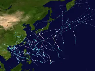 25 tropical depressions formed this year in the Western Pacific, of which 20 became tropical storms. 14 storms reached typhoon intensity, of which 3 reached super typhoon strength.[1]