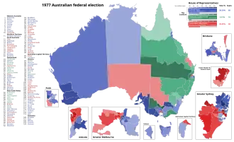 The incumbent Liberal-National Country Coalition led by Malcolm Fraser, in government since 1975, was elected to a second term over the opposition Labor Party led by Gough Whitlam. While the Coalition suffered a five-seat swing, it still had a substantial 48-seat majority in the House. The Liberals retained an outright majority, with 67 seats. Although Fraser thus had no need for the support of the National Country Party, the Coalition was retained.
