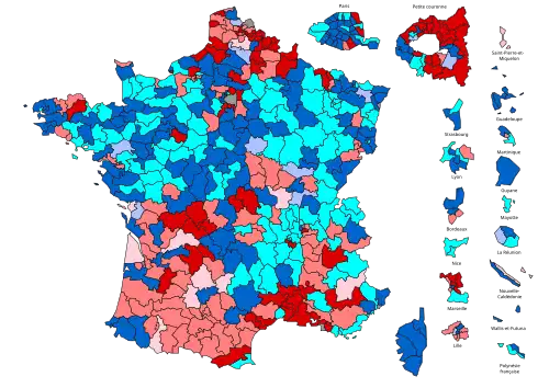 | French Communist Party | 5,870,402 | 20.55 | 4 | 4,744,868 | 18.62 | 82 | 86 | |