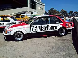 Peter Brock and John Harvey won the race driving a Holden Commodore entered by the Marlboro Holden Dealer Team. (2009 image).