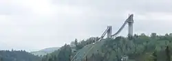 The construction was financed by the Federal government and the State of New York at a total cost of $92 million[28] including $22.7 million for the Olympic Village, $16.9 million for the Olympic Center, more than $15 million for the alpine ski center of Whiteface Mountain, $7.9 million for the facilities of Mont Van Hoevenberg (cross-country skiing, bobsleigh and biathlon), $5.4 million for the ski jumps and $5.3 million for the bobsled run. Additional costs included transport improvements totaling $4.8 million, the extension of the electricity and hydroelectric network at $2.7 million, and construction for the headquarters of the New York State Police at $3.8 million. In addition, $8 million was allocated for security costs. The expenses of the organizing committee were mainly administrative totaling $48.1 million, and for press and broadcasting centers.[29][30][25]
