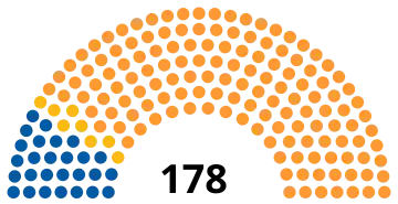 Last election 65.34%, 134 seats 16.95%, 17 seats 12.15%, 10 seats