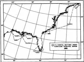 - ^ "Hurricane-force Warning Issued For '85". The Palm Beach Post. Associated Press. May 30, 1985. p. A1. Retrieved February 24, 2021 – via Newspapers.com.