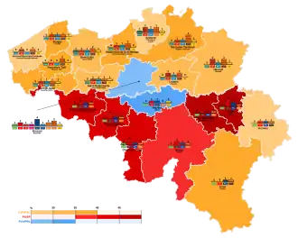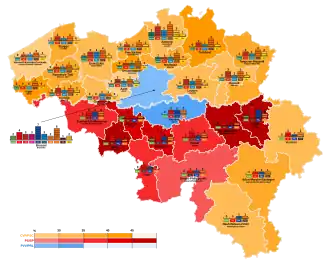 Party Votes % Seats +/– Christian People's Party 1,291,244 21.29 49 +6 Socialistische Partij 882,200 14.55 32 +6 Parti Socialiste 834,488 13.76 35 0 Party for Freedom and Progress 651,806 10.75 22 –6 Liberal Reformist Party 619,390 10.21 24 0 Social Christian Party (PSC) 482,254 7.95 20 +2 People's Union 477,755 7.88 16 –4 Agalev 226,758 3.74 4 +2 Ecolo 152,483 2.51 5 +3 Vlaams Blok 85,391 1.41 1 0 Democratic Front of Francophones 72,361 1.19 3 – Communist Party of Belgium 71,695 1.18 0 –2 Democratic Union for the Respect of Labour 69,707 1.15 1 –2 Workers' Party of Belgium 46,034 0.76 0 0 Solidarity and Participation 31,983 0.53 0 New Socialist Workers' Party 13,681 0.23 0 0 Green 9,719 0.16 0 New Walloon Party 9,284 0.15 0 New Organic Front for the Cultural Renewal of Solidarist Europe 8,221 0.14 0 New Union for a New Democracy 6,609 0.11 0 New Party of German-speaking Belgians 5,228 0.09 0 0 National Front 3,738 0.06 0 New Christian Liberal Party 3,442 0.06 0 New Parti Communautaire National-Européen 1,763 0.03 0 New Zo Maar 1,630 0.03 0 New United Feminist Party 1,201 0.02 0 0 Union of Progressive Walloons 828 0.01 0 New Flemish People's Party 678 0.01 0 New Charlier 655 0.01 0 New GIOT 640 0.01 0 New Humanist Party 518 0.01 0 New Appeal to All 464 0.01 0 New SDU–USD 412 0.01 0 New Total 6,064,260 100.00 212 0 Valid votes 6,064,260 92.55 Invalid/blank votes 487,974 7.45 Total votes 6,552,234 100.00 Registered voters/turnout 7,001,297 93.59 Source: Belgian Elections