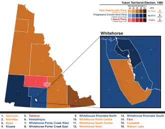 16 seats of the Yukon Legislative Assembly 9 seats needed for a majority | |||||||||||||||||||||||||||||||||||||||||||||||||