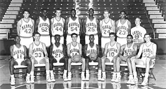 This season also marked the creation by a group of KU students of the famous "Beware of THE PHOG" banner. It was first displayed for the Duke game on February 20, 1988, and then again for that season's final home game on March 5, the Senior Night celebrations honoring Danny Manning and the other KU seniors, Archie Marshall and Chris Piper. It came down after that, and the students gave the banner to Phog Allen's granddaughter Judy Morris. Morris told Kansas Assistant Athletic Director Floyd Temple she thought the banner should remain a fixture in Allen Fieldhouse, and Temple agreed.[1][2]