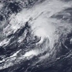 On September 2 a cluster of thunderstorms associated with a northwestward-moving tropical wave developed a surface low near Bermuda. Though the surface low remained poorly defined and separate from the convection, the system became a tropical depression on September 3.[40] Under the influence of southwesterlies, the depression accelerated northeastward at 50 mph (80 km/h). Late on September 3 it was upgraded to Tropical Storm Ernesto. The storm continued to strengthen as it lost tropical characteristics.[41] A large extratropical storm over the North Atlantic absorbed Ernesto on September 5. The only land area affected by the storm was in the Azores, where it brought near storm-force winds to Flores Island.[6]