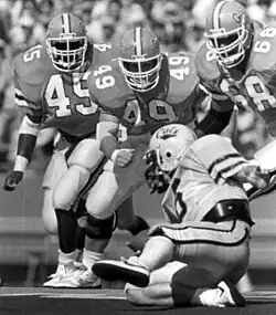 The Gators started the 1988 season 5–0 and were ranked as high as No. 14. During an October game against the Memphis State Tigers, star running back Emmitt Smith injured his knee and was unable to play for a month. Florida lost the Memphis State contest and the next three as well, with the Gator offense unable to score a single touchdown while Smith was sidelined. The offense under coordinator Lynn Amadee struggled all season, with Gator quarterbacks combining to throw three touchdowns and 17 interceptions,[2] leading one Florida sports columnist to dub the offense the "Amadeeville Horror".[3] Defensive tackle Trace Armstrong was All-SEC in 1988, setting a new school, single-season record for tackles for a loss with nineteen, including seven sacks. In both 1987 and 1988, walk-on safety Louis Oliver was an All-American.