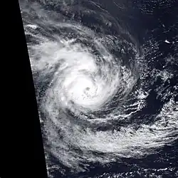Operationally, the MFR considered the tropical cyclone year to begin on August 1 and continue to July 31 of the following year.[1] However, the JTWC began the year on July 1 and it lasted through June 30 of the following year.[2] The latter agency tracked two short-lived tropical cyclones in July 1989, labeling them Tropical Cyclone 01S and 02S, but they are not considered part of MFR's season.[2] After these early storms, another tropical depression formed east of Diego Garcia on September 21, classified as Tropical Cyclone 03S.[4] Forming from the near-equatorial trough,[5] the system moved generally to the southwest, dissipating on September 27 as it approached Mauritius.[4] In the next month, Tropical Cyclone 04S formed closer to Diego Garcia on October 11. The JTWC classified it as a tropical depression on October 13 but dropped advisories the next day. The system initially drifted to the south but later turned to the northwest, dissipating on October 17.[2][6] The final of a series of early tropical systems was a tropical depression that formed east of Diego Garcia on October 28. It moved southeastward, classified by the JTWC as Tropical Cyclone 05S on October 31. The agency briefly estimated peak winds of 65 km/h (40 mph), making it a tropical storm, before the storm looped back to the west and dissipated on November 2.[2][7] Later, the precursor to Australian Tropical Cyclone Bessi was tracked in the eastern portion of the south-west Indian Ocean basin in the middle of April. The Australian Bureau of Meteorology (BOM) classified the system as a minimal tropical storm while still west of 90° E, although the MFR did not classify the system before it entered the Australian basin on April 15.[8]