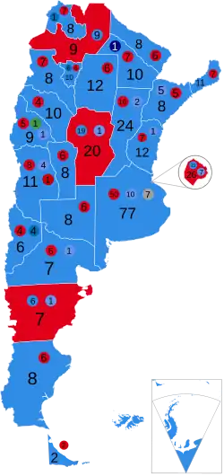 | Tucumán | 214,849 | 39.47 | 2 | 82,879 | 15.23 | — | 6,422 | 1.18 | — | 36,041 | 6.62 | — | 204,089 | 37.50 | 2 |