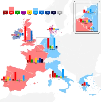 ![]() Post-election composition of each member state's delegation * The number of seats was increased from 434 to 518 – so this is a nominal figure | |||||||||||||||||||||||||||||||||