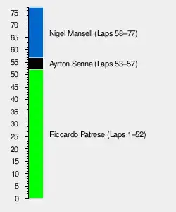 Many of the leading cars had problems with tyre vibrations - both Senna and Mansell complained about this, whilst Prost also had difficulties after picking up debris whilst going offline to avoid Patrese's oil.[4]