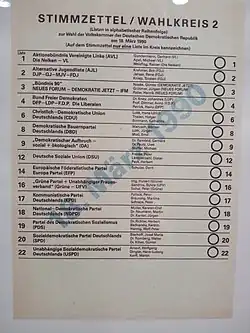 5. ^ "Volkskammer Election 1990". bpb.de. 19 March 2009.