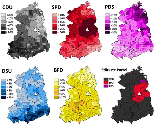 State CDU SPD PDS DSU BFD B90 DBD GUFV DA NDPD DFD VL Others