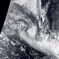 On December 9, ahead of Cyclone Wasa affecting French Polynesia, the High Commissioner Jean Montpezat declared a state of maximum alert which closed schools and banned navigation.[18][19][20] On December 12, tourists on the island of Bora Bora were evacuated to a local church, after the system had swept high seas into tourist bungalows.[21] Overall Cyclone Wasa-Arthur caused an estimated US$60 million in damage within the six Leeward Islands, the two Windward Islands of Tahiti and Moorea and several of the Austral Islands with the majority of the damage done between December 9 – 12.[20] The system destroyed 367 homes, damaged 855 other homes, destroyed or damaged a variety of crops and damaged several public buildings, hotels, roads and power installations, with the worst affected islands were Bora Bora and Tubuai.[1][20] On Rurutu island, Moerai harbour was destroyed by a cyclonic swell generated by the system, while the local school and police station were destroyed by high waves.[22][23] A woman and her child were killed while asleep after torrential rainfall from the system caused a mudslide on the island of Moorea, during a night of torrential rain the day after Wasa had made its closest approach to the island.[1][20][24]