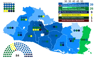 | Nationalist Republican Alliance | 466,091 | 44.33 | 39 | +8 |