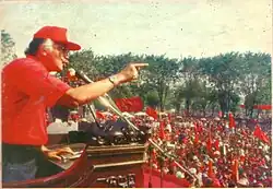 At the beginning of the PPP's campaign in Jakarta on 10 May, senior party official Djufrie Asmoredjo again stated that the PPP would nominate Suharto for the presidency, with General Try Sutrisno as his deputy. On the same day, PPP chairman Ismail Hasan Metareum said that the party would work to improve the lot of the disadvantaged by building a pro-people economy and bringing about social justice.[14] On 29 May, he said the PPP must win a majority of the vote in Jakarta, and reminded supporters to vote for the party.[15] Ending the party's campaign in Semarang on 3 June, secretary general Matori Abdul Djalil read a five-part political statement calling on people to use their vote and saying that Pancasila was the only basis for society.[16]