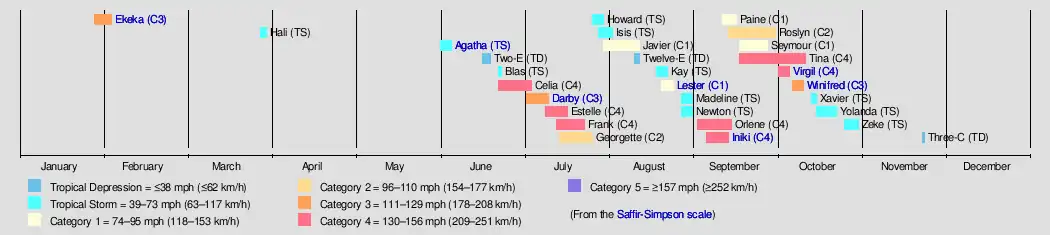 Hurricane WinifredHurricane Virgil (1992)Hurricane InikiHurricane Lester (1992)Hurricane Darby (1992)Tropical Storm Agatha (1992)Hurricane EkekaSaffir-Simpson scale