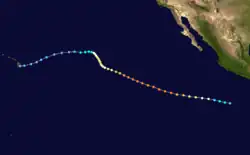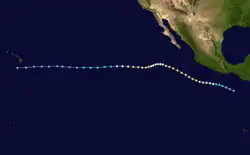 The 1992 Pacific hurricane season was the most active Pacific hurricane season on record, featuring 27 named storms. The season also produced the second-highest ACE value on record in the basin, only surpassed by the 2018 season. The 1992 season officially started on May 15 in the eastern Pacific, and on June 1 in the central Pacific, and lasted until November 30. These dates conventionally delimit the period of each year when most tropical cyclones form in the northeastern Pacific Ocean.[1] However, tropical cyclogenesis is possible at any time of the year, as demonstrated by the development of Hurricane Ekeka on January 28, and Tropical Storm Hali two months later.