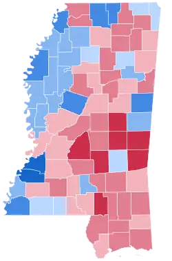 Despite the fact that Clinton was from neighboring Arkansas, the state remained reliably Republican as the party had recently gained a seat in 1988 elections While Clinton did manage to win a few other Southern States, Mississippi provided Bush with his highest vote percentage in the nation, which was the closest he came to winning an absolute majority in a state.[8] (However, it was only his sixth-best state in margin of victory.) As of the 2024 presidential election, this is the last election in which Hinds County voted for a Republican presidential candidate and the last election in which Tishomingo County voted for a Democratic presidential candidate.[9]